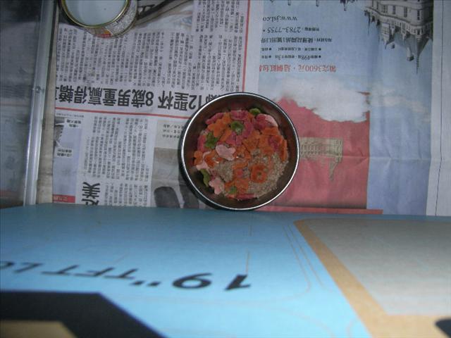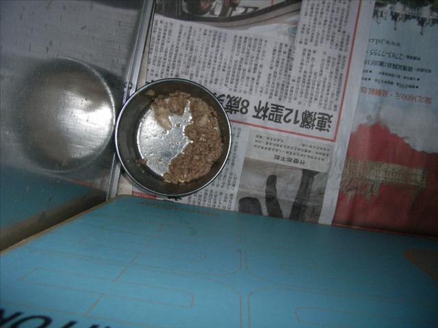一直到中午,牠仍無動於衷,我試過把乾飼料弄成小塊一點(因為原本買的是成貓吃的),試過泡水(那個泡過熱水的飼料超級香噴噴!),試過成貓/幼貓吃的罐頭,試過混合的,這位老大就是不吃!